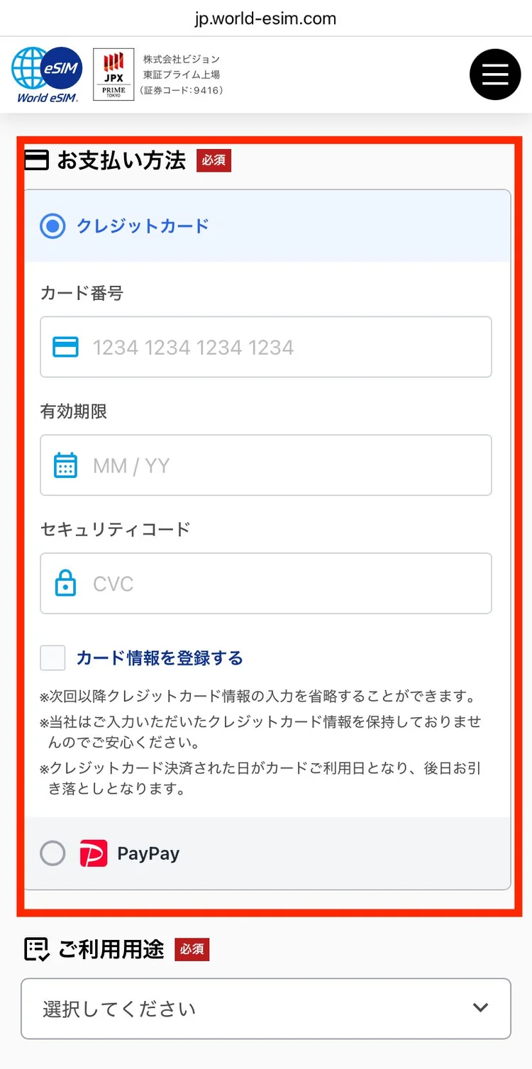 お支払い方法を入力します。