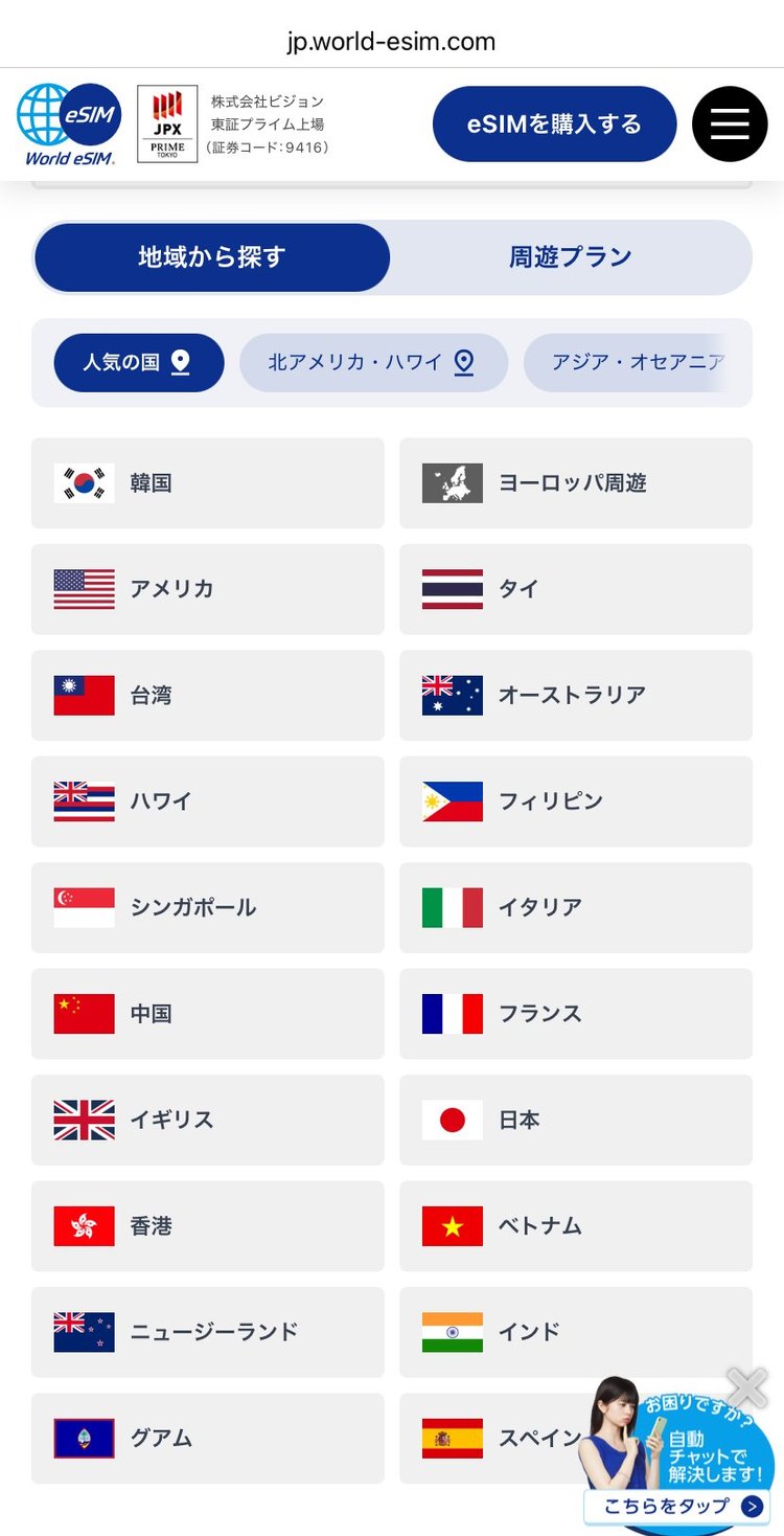 さらに、日本企業の(株)ビジョンが運営するeSIMサービスなので、日本語サポートにも対応しています。